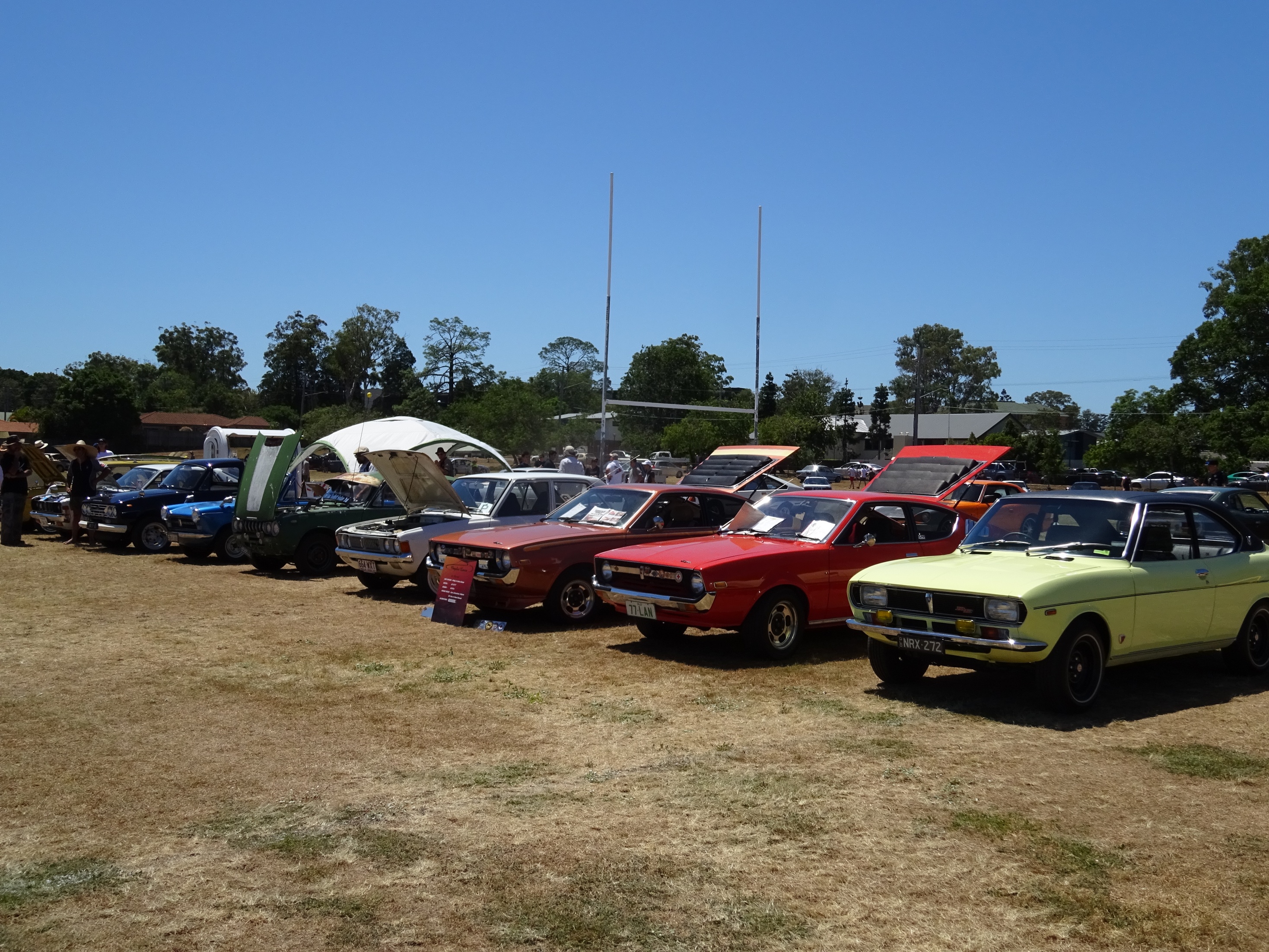 A few pics from Sunday's All Jap Classic It was an oppressively hot day but there was still an impressive turnout of classics (and moderns) with more than 800 cars rolling through the gates. The majority started to bail on the event at about 930am and the field was virtually empty by 11am. We also had a couple of unexpected visitors on the day with Peter turning up in his beautiful 117 coupe having driven it up from Sydney (I think that's where he lives) as well as Ross (2ldohc) and his fiance (sorry forgotten her name already..... how bad is that  but she does have the most amazing engagement ring EVER) turning up for a quick look and a chat. Here are some of my pics for your viewing pleasure  Attachment: